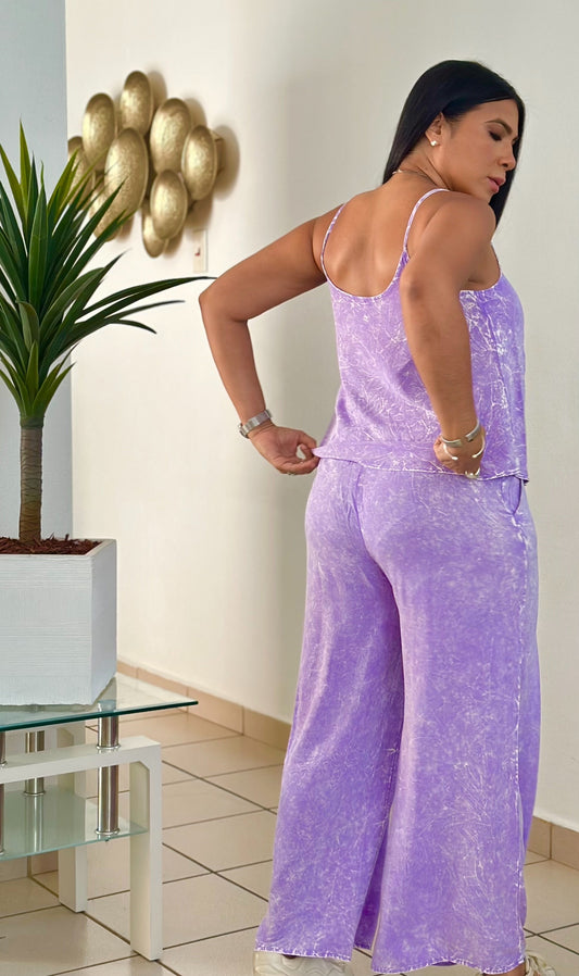 Lavander Summer Relax Pants Set With Pockets (Spandex)