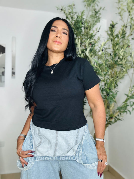 Black Spandex Ruffle Crop Top (Bien cómoda y expandible total)
