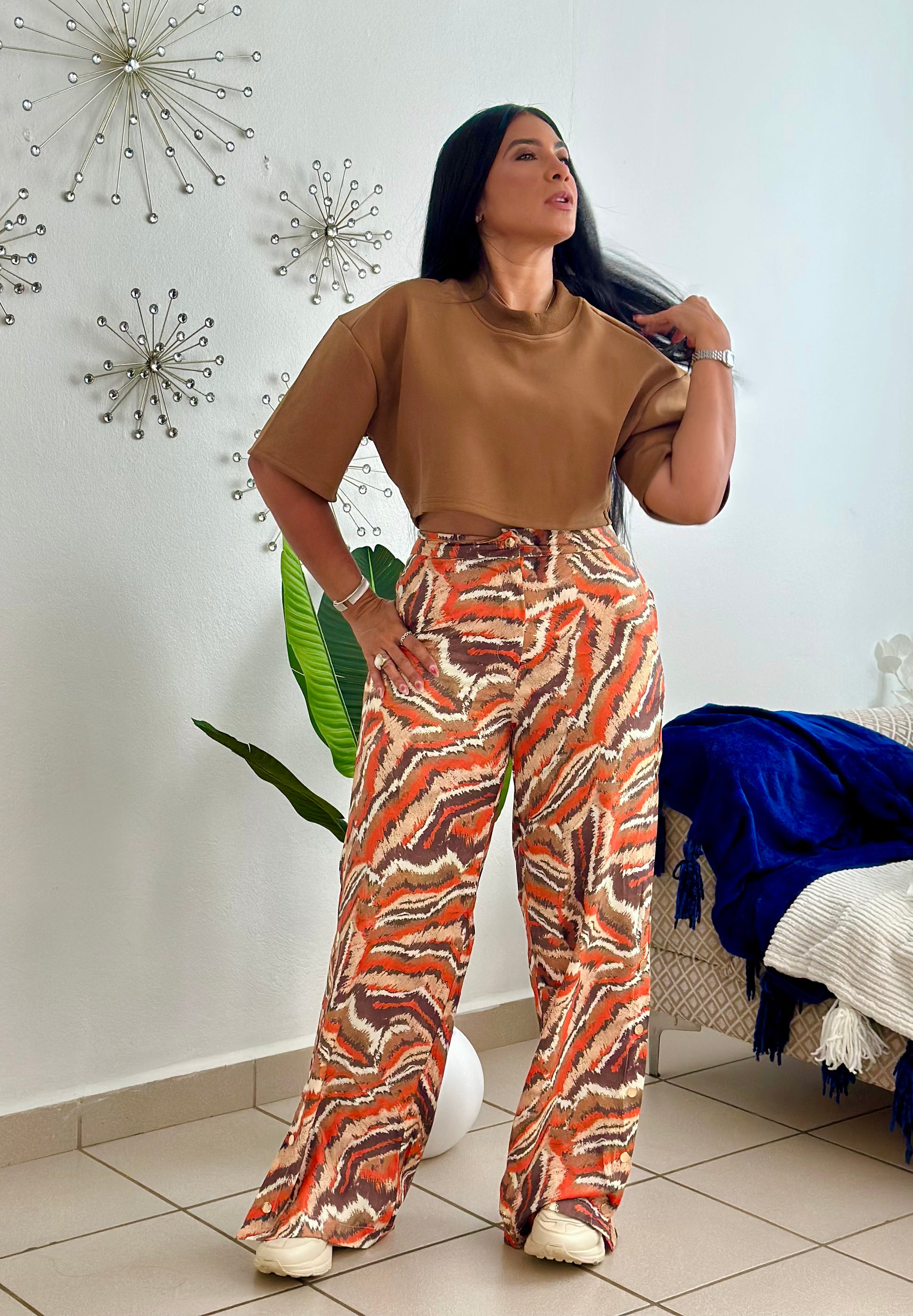 Megs espectacular este Wife Leg Pants que puedes utilizar tanto con tennis, botas, tacas, etc. suelto, liviano, totalmente expandible y mega cómodo.  Tiene bolsillos.  Modelado talla small