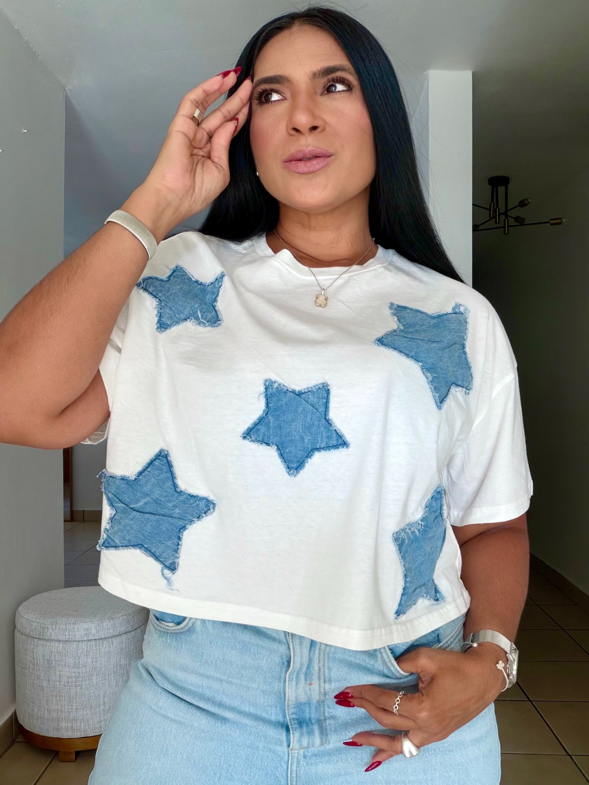 Estrellas White and Denim Top
