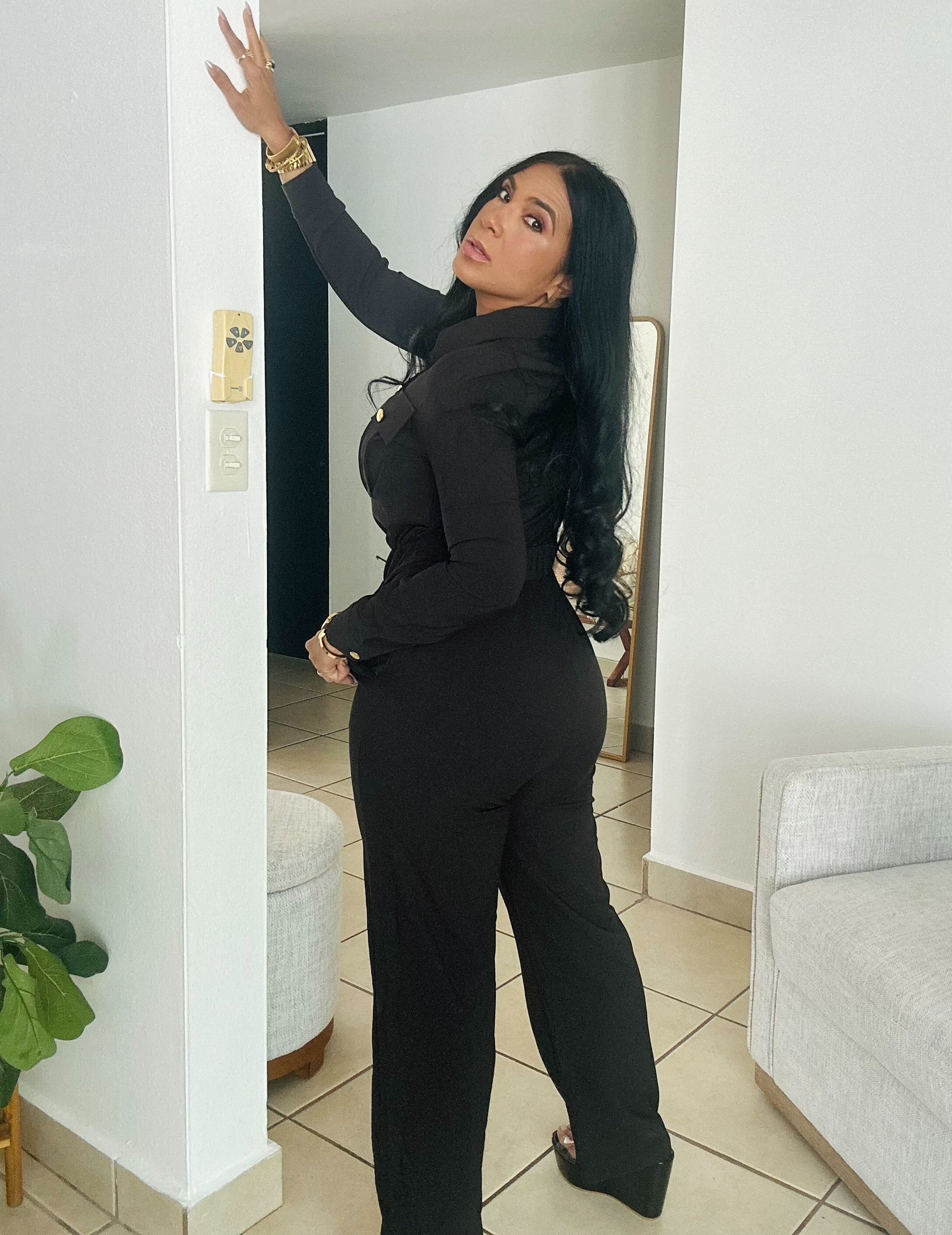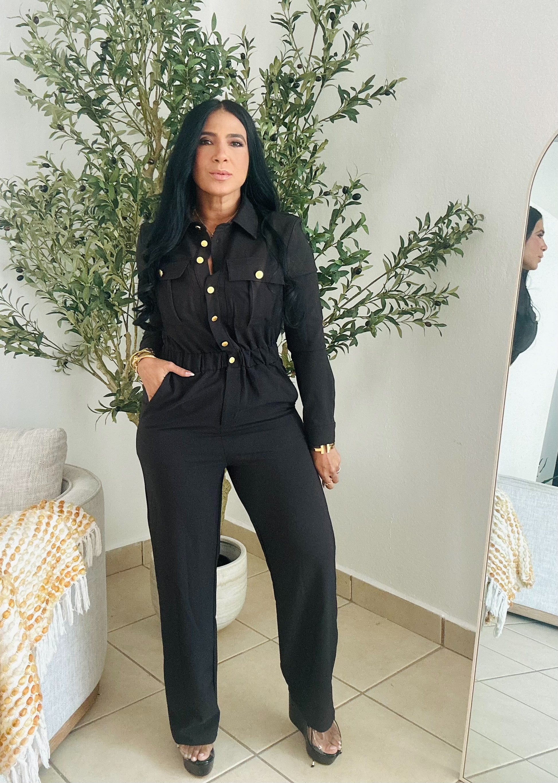 Vallenato Black Spandex Jumpsuit With Pockets (botones dorados)