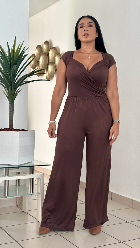 Brown Choco Spandex Cotto Palazzo Jumpsuit