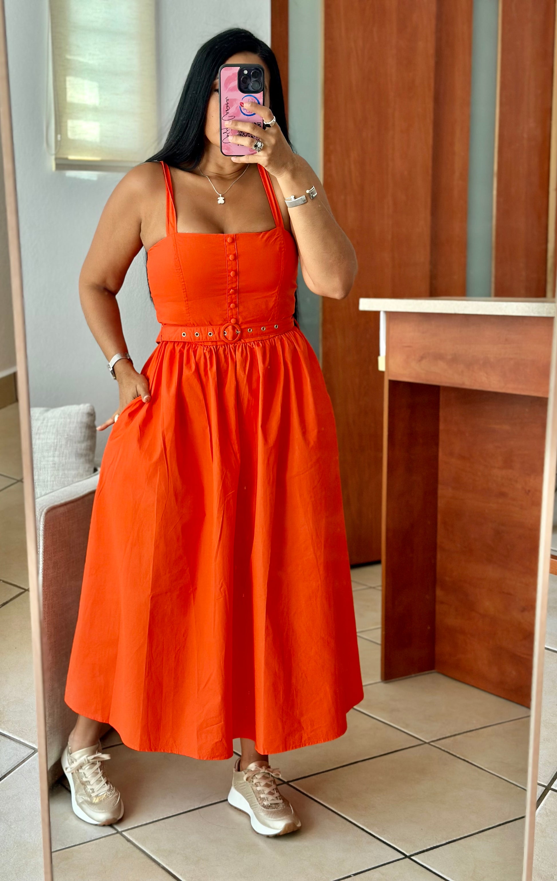 June Vibes Orange Midi Dress (cinturón incluído) Premium Collection