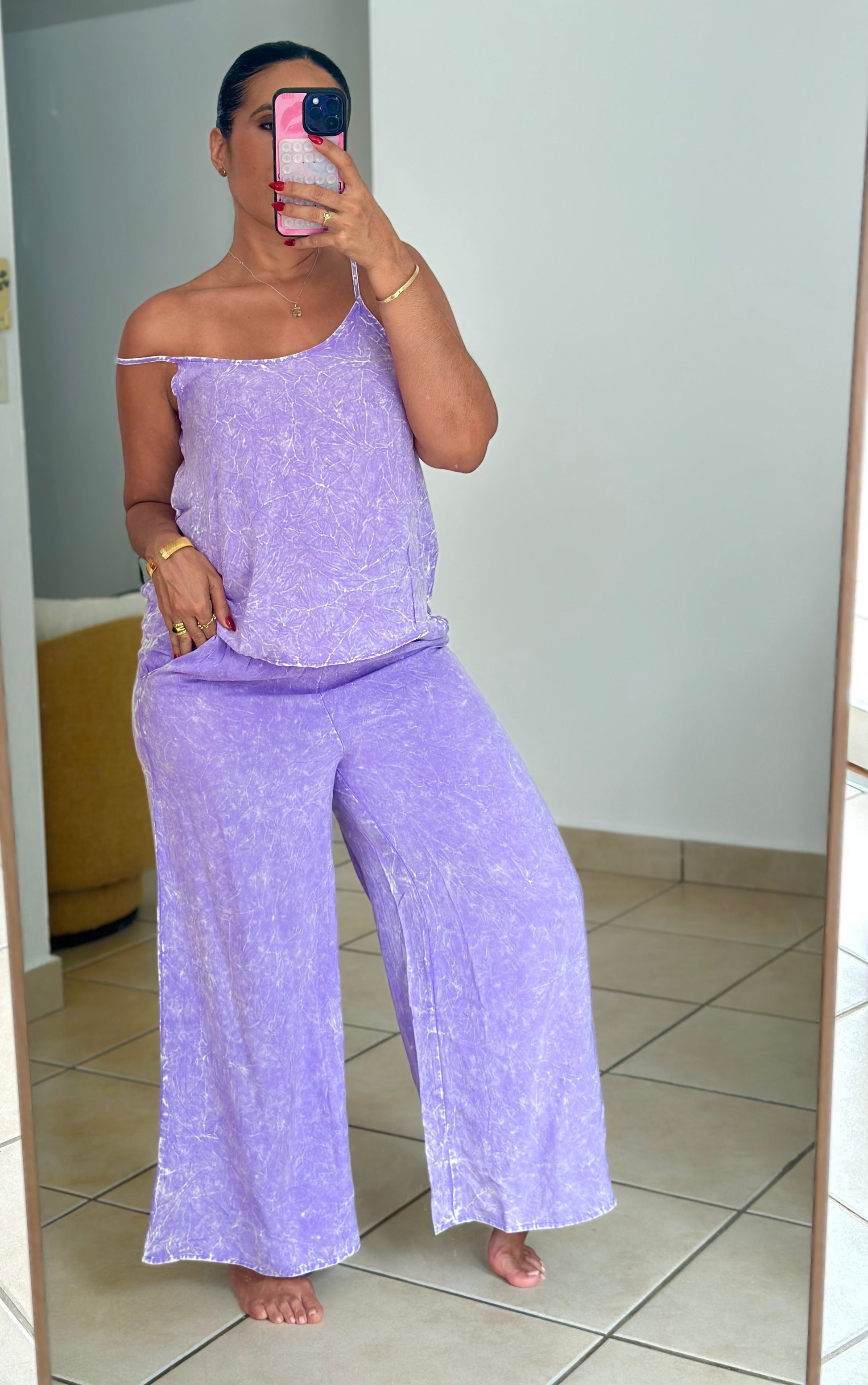 Lavander Summer Relax Pants Set With Pockets (Spandex)