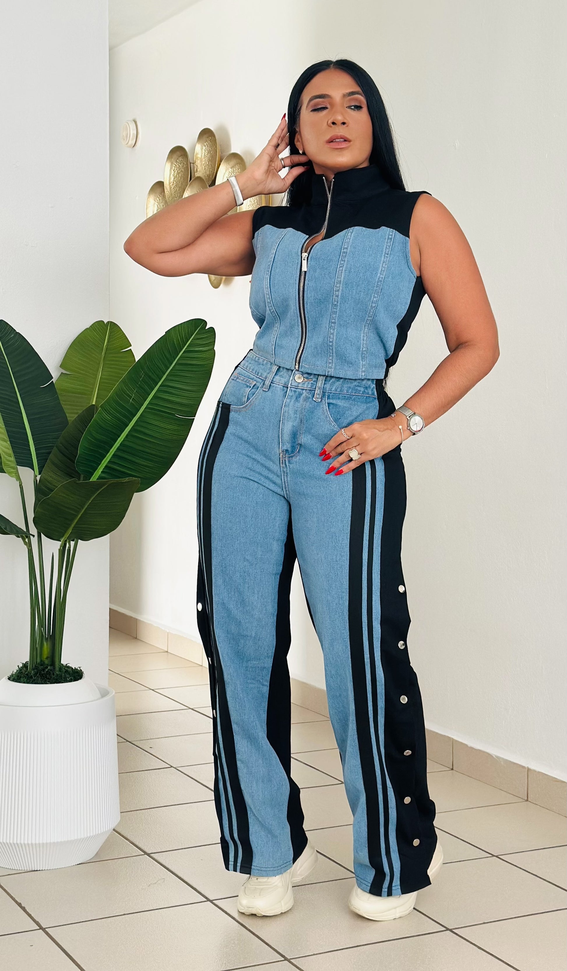 Lela Black and Denim Spandex Travel Set (tiene bolsillos y totalmente expandible) único color