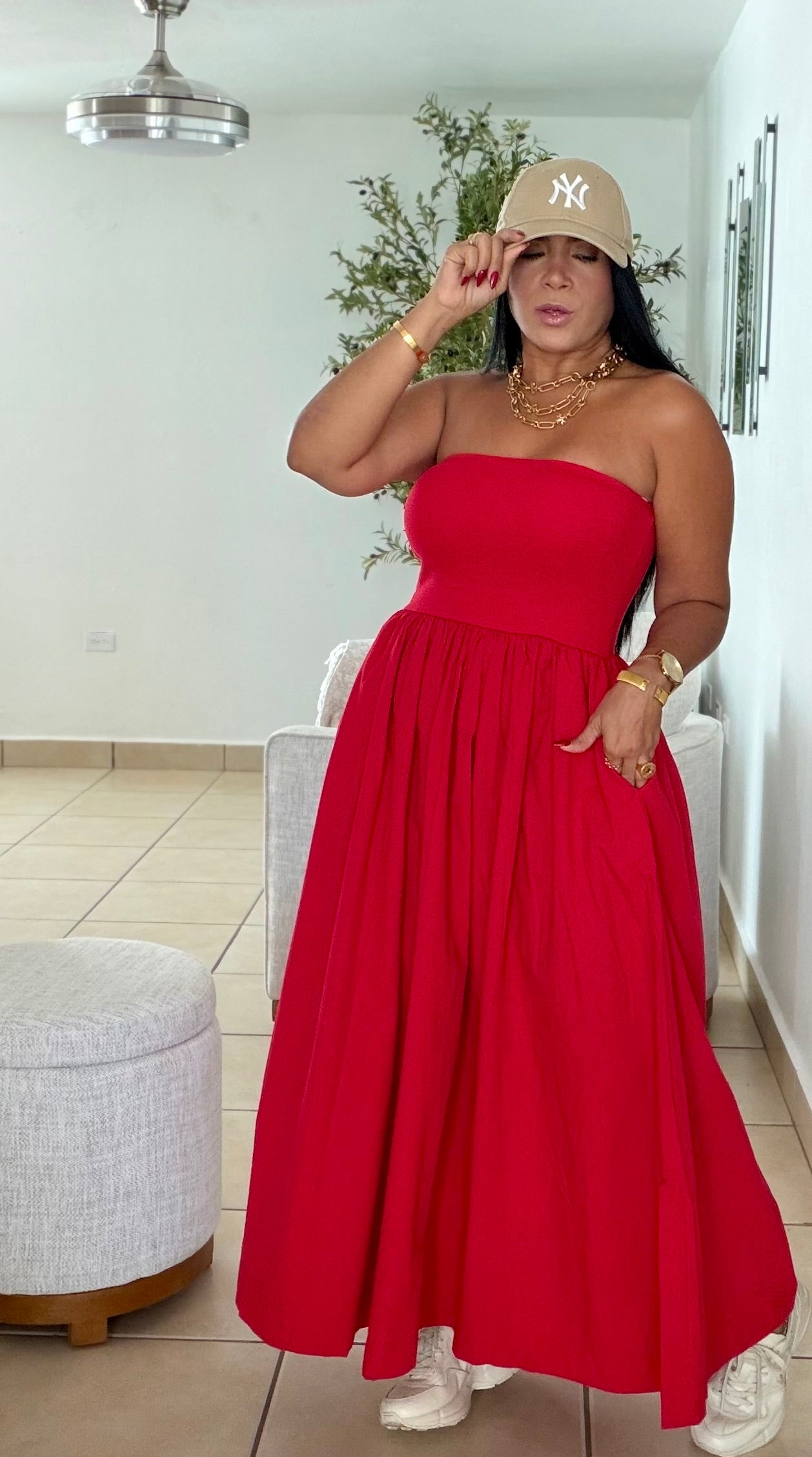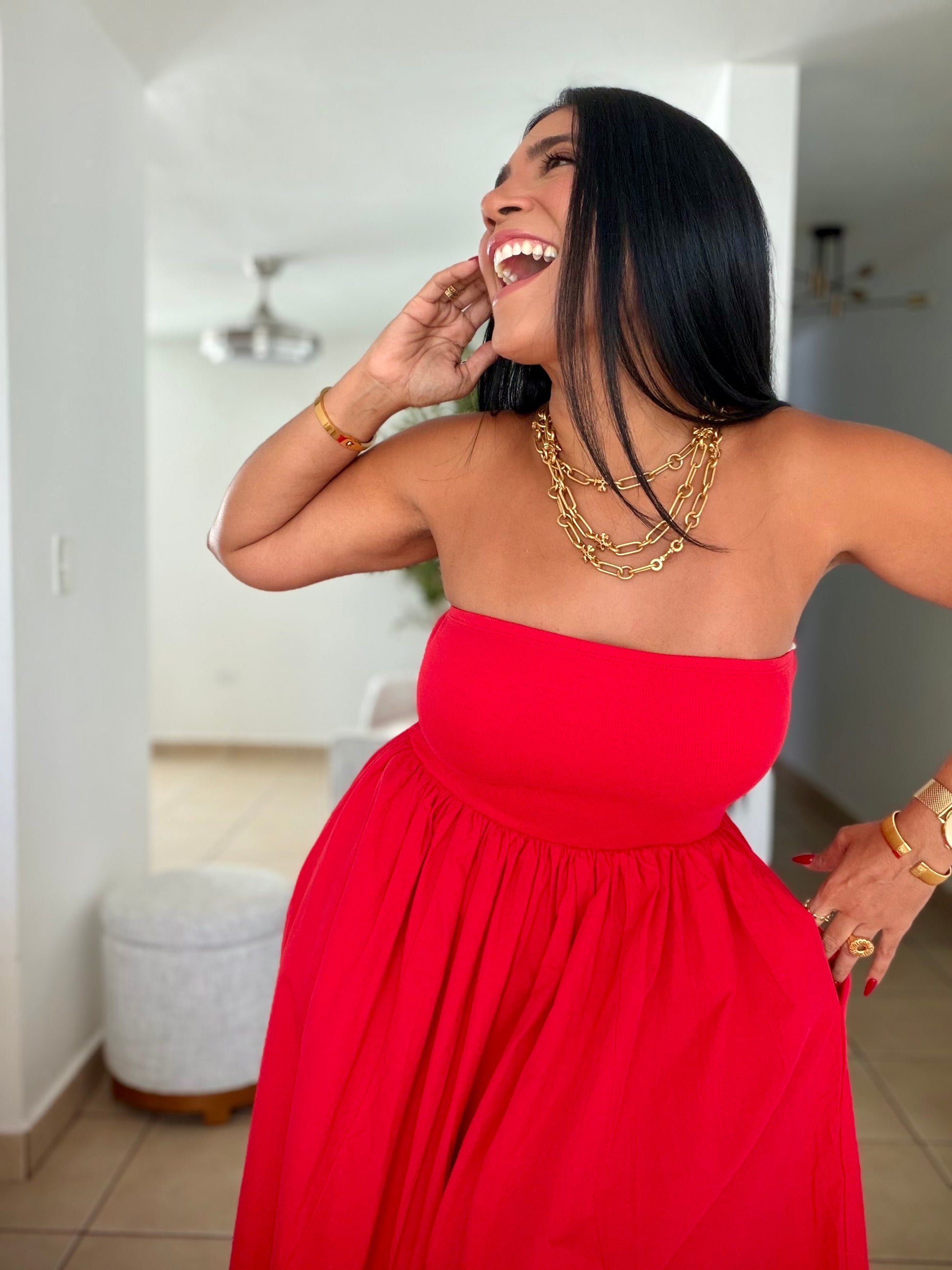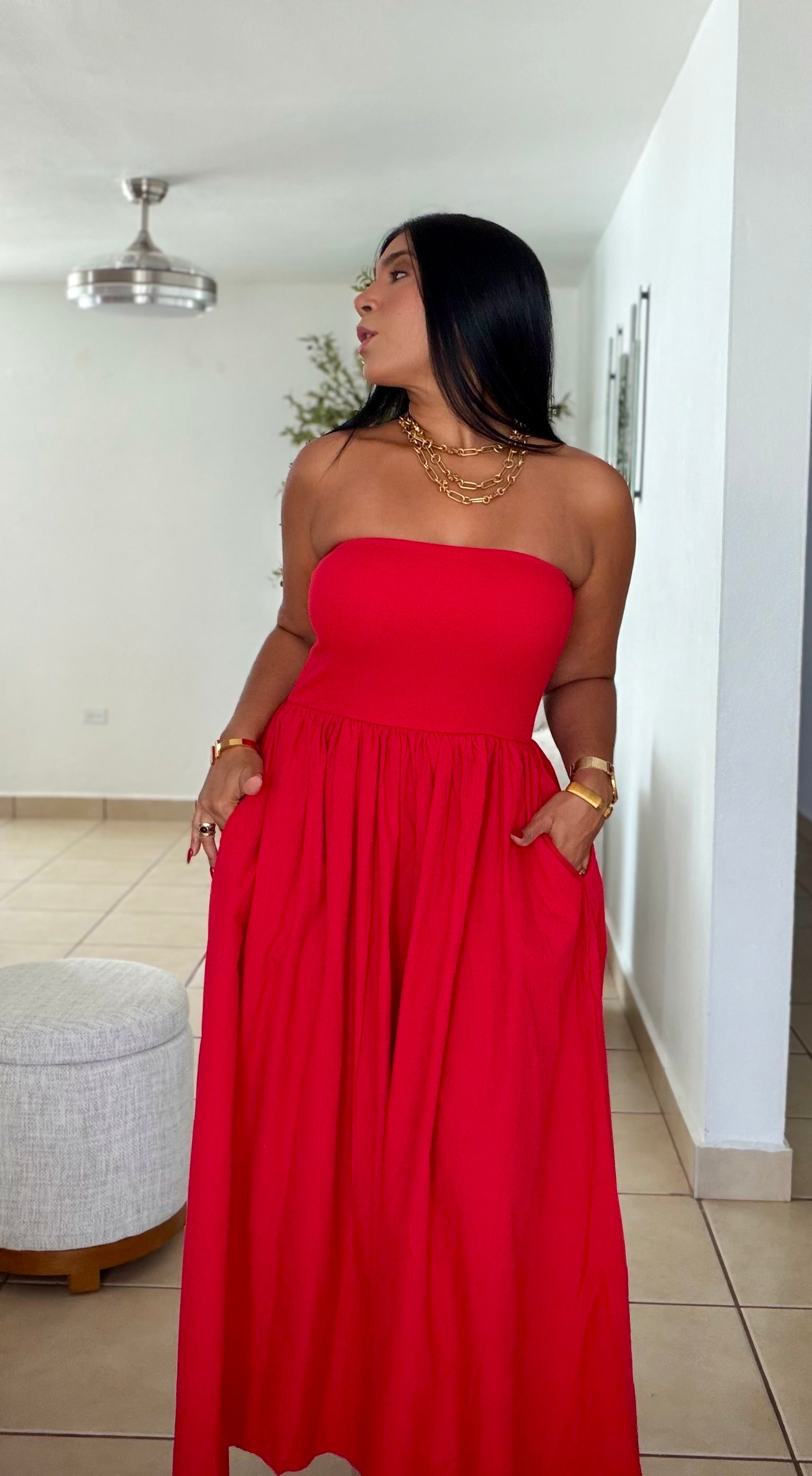 Stunning Red Tube Spandex Midi Dress (demasiado bello!!) tiene bolsillos. No zipper ni botones